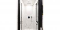 La salle de bain est ouverte sur la chambre, ce qui permet de l’agrandir visuellement (elle n’a pourtant qu’une largeur de80cm !) complétement revêtu en carrelage grand format, nous avons aussi utilisé de la robinetterie Grohe encastrée https://www.grohe.fr/fr_fr/pour-la-salle-de-bains/collections/thermostatiques-a-deux-poignees.html avec un ciel de douche ultra confortable.