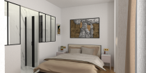 Pour ce projet de 55m2, nous avons réuni deux studios et récupérer la courette pour créer un superbe appartement.