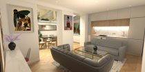 La cuisine ouverte sur le salon, permet au client de profiter de ses invités lorsqu’il reçoit et prépare le diner. Pour les fans de cinéma, un projecteur est dissimulé dans un placard haut et un écran motorisé dans le faux plafond.