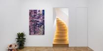 Les lignes de la galerie sont très épurées, et les murs sont soulignés par des plinthes rentrantes, donnant un effet de légèreté.